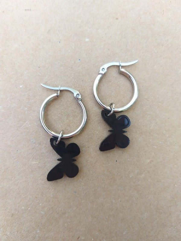 Argollitas de acero quirúrgico de 25mm y dijes de acrílico