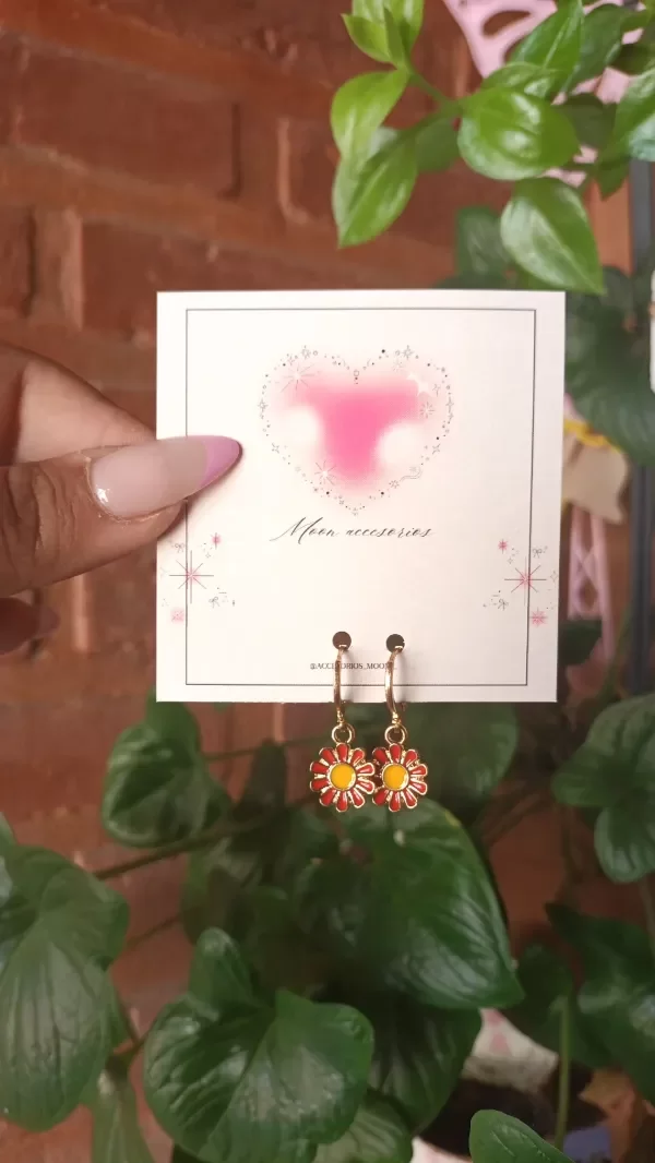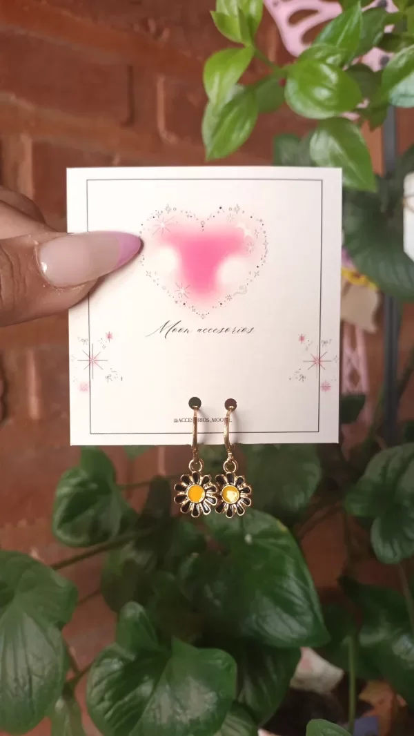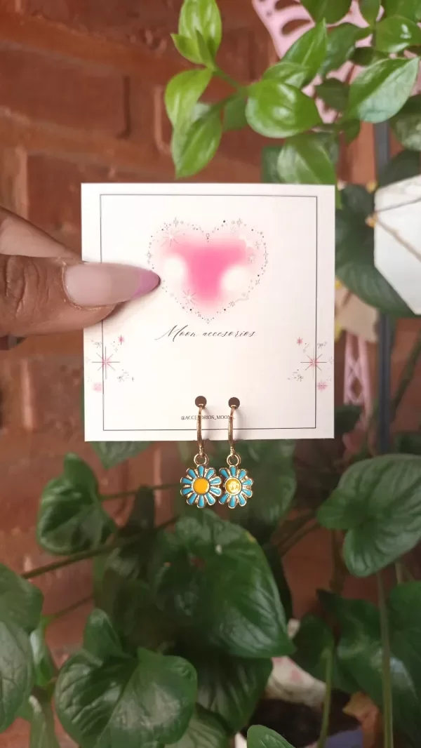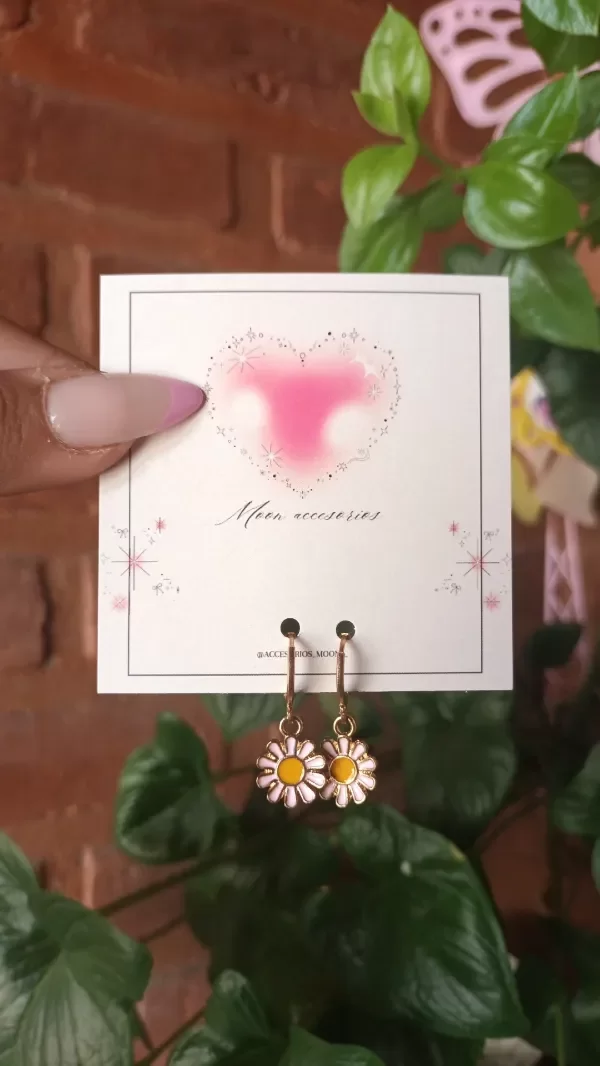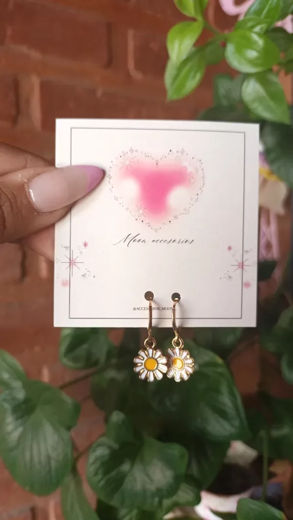 Aros de acero quirúrgico 316L dorado y margaritas esmaltadas